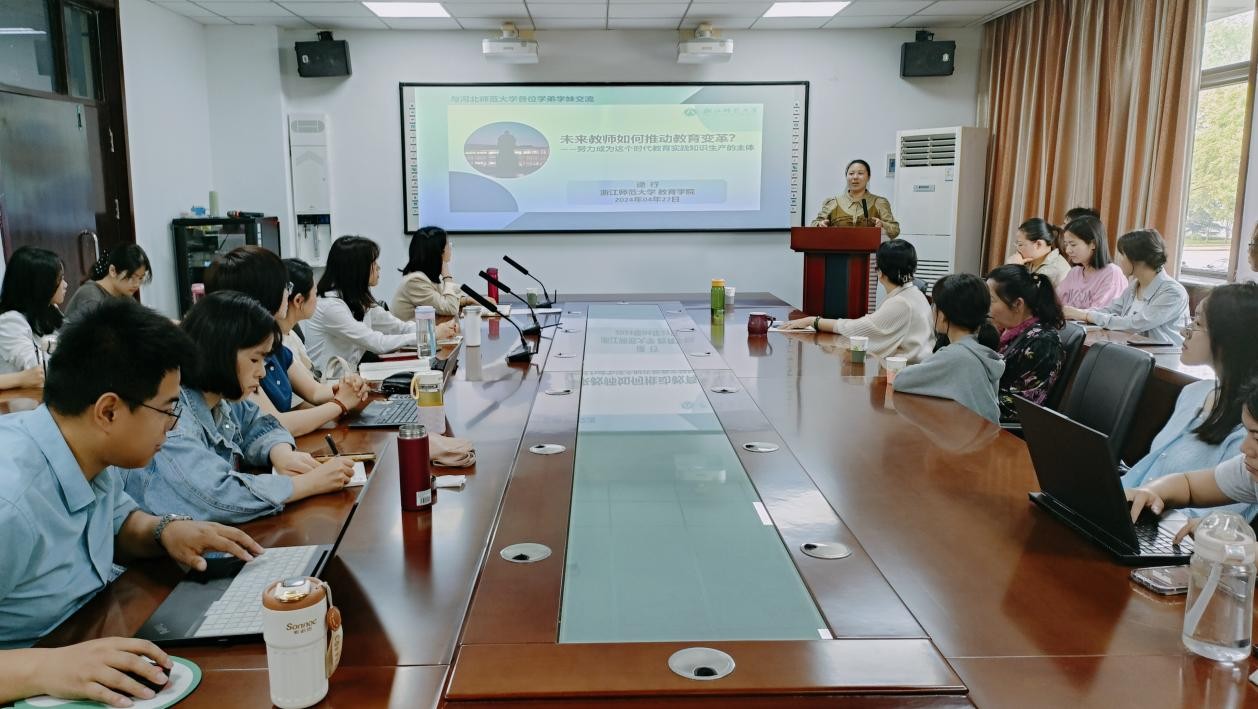 4月27日上午,浙江师范大学beat365中国官网硕士生导师逯行博士应邀到公司,面向广大师生开展题为“未来教师如何推动教育变革”学术讲座交流。公司教学副经理于川主持,部分专任教师、教育技术类专业研究生及相关专业本科生到场参加。